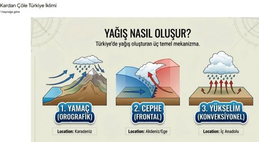 | Akdeniz | ✅ Yaygın | ✅ Yaygın | ⚠️ Az | Toroslar yamaç yağışlarını artırır, kışın cephe yağışları etkilidir |